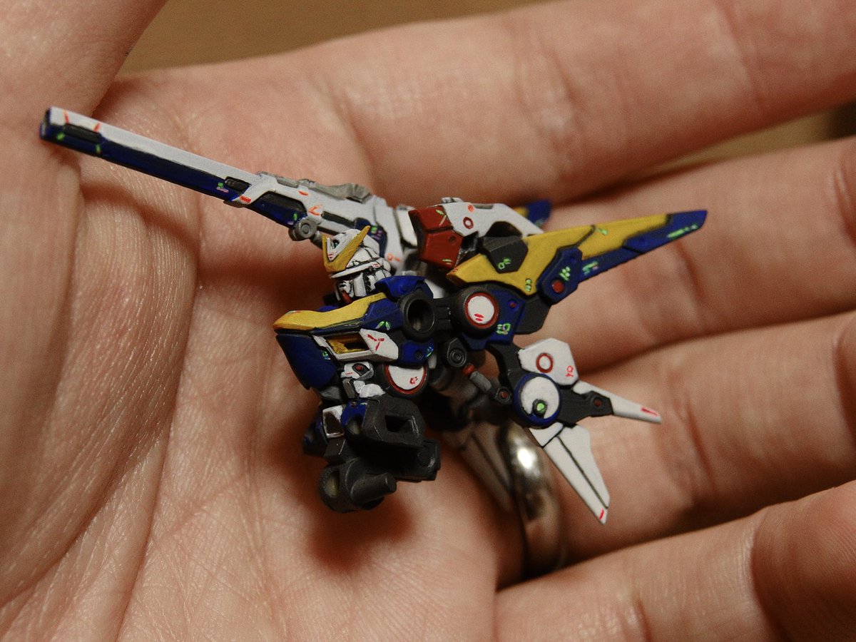ガンダムアーティファクト V2アサルトバスターガンダム 完成🎉🎉 ホログラムをイメージした手書きマーキングを全体に施しています。 手のひらサイズでこの満足度! #ガンダムアーティファクト #ガンプラ #ミニチュアペイント