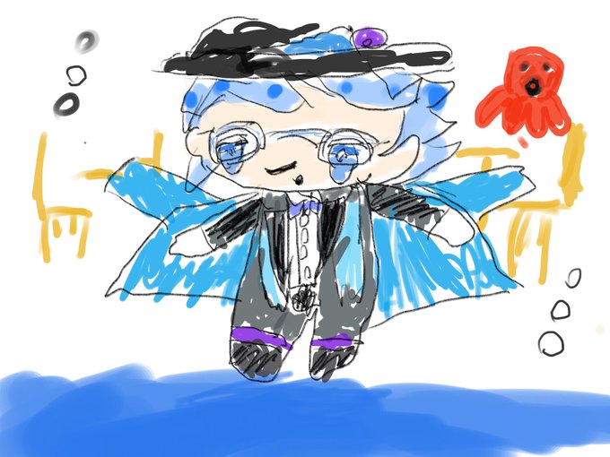 0 6 #アズール #ツイステファンアート アズールがモストロラウンジで働いてる絵 (次女・小1・iPad mini プロクリエイト) 21/01/06 15:47