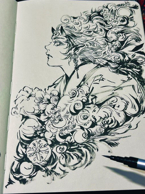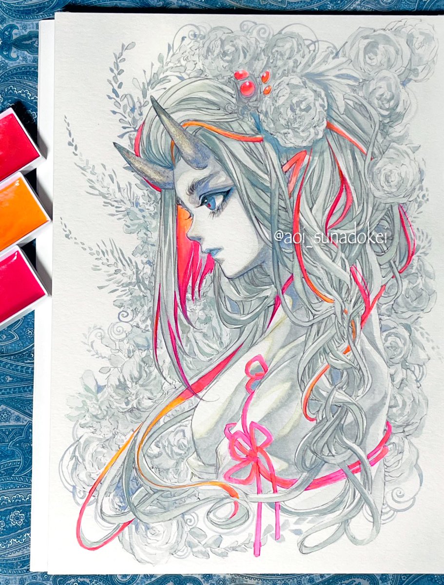 完成ー!楽しかったー!!☺️🙌 複数のグレーと、ピンクやオレンジの蛍光色 とても素敵な組み合わせ!最高!🎨 角は粒子粗めのきらっきらにしました✨✨(2枚目と動画参照) #アナログ絵 twitter.com/i/web/status/1…