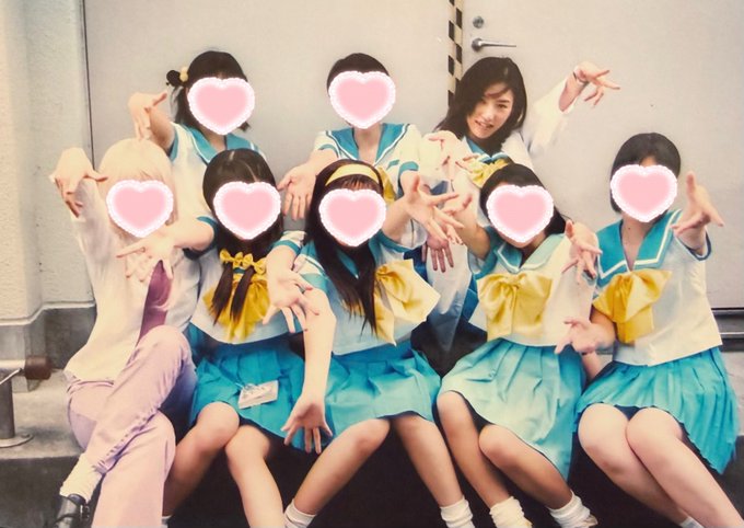 あわせをした時の写真📸初代ときめきメモリアル。平成み溢れるポーズが懐かしい✨色味を揃えてもらえて嬉しかったです!みんな自作だから型紙も違ってプリーツの作り方や襟の作り方も絶妙に違っていて楽しかった思い出です。そしてセーラー襟作るの難しい。 hx.com/aoi_takamura/s…