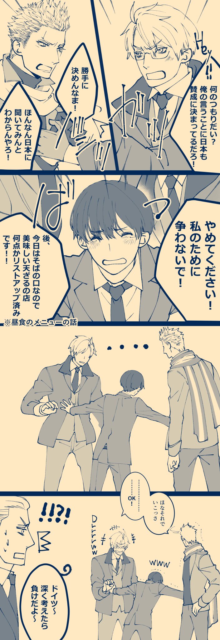 これは集まるとちょいちょい開国小芝居するのにはまってる米蘭日。