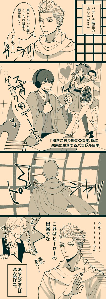 225 1904 これは集まるとちょいちょい開国小芝居するのにはまってる米蘭日。 23/04/26 22:38