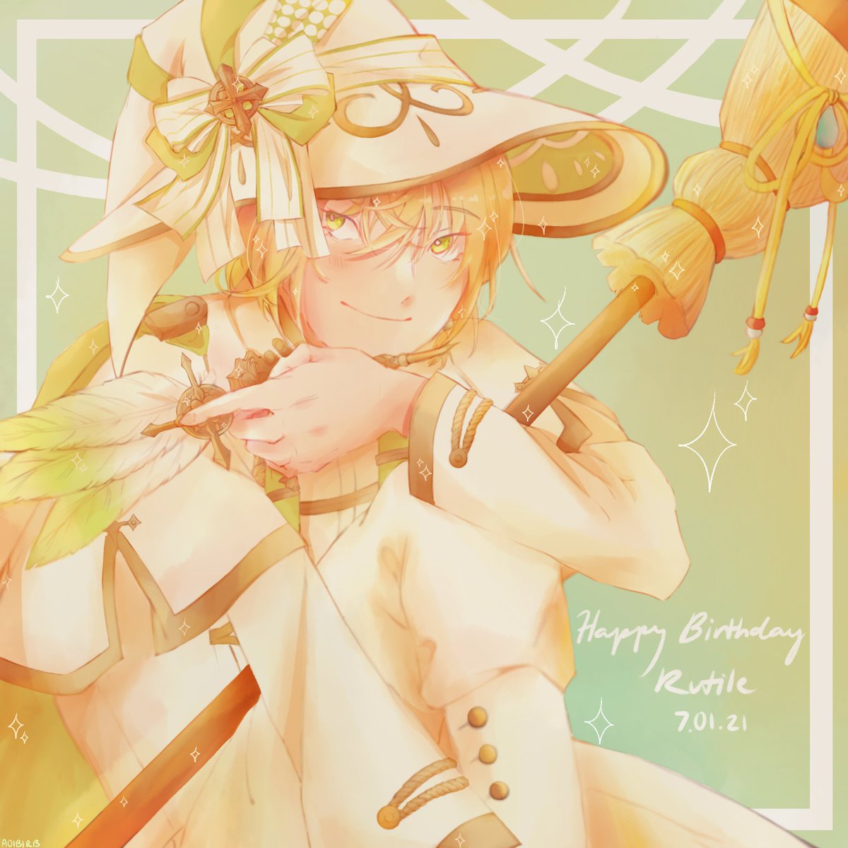 happy birthday to the kindhearted, cheerful southern wizard, rutile! 💚🌼💐💚 #ルチル誕生祭2021 #ルチル生誕祭2021 #まほやく_FA an art collab i did with @palgals_!! she did the lines and i colored it, please be sure to look at the other half of the collab!💚