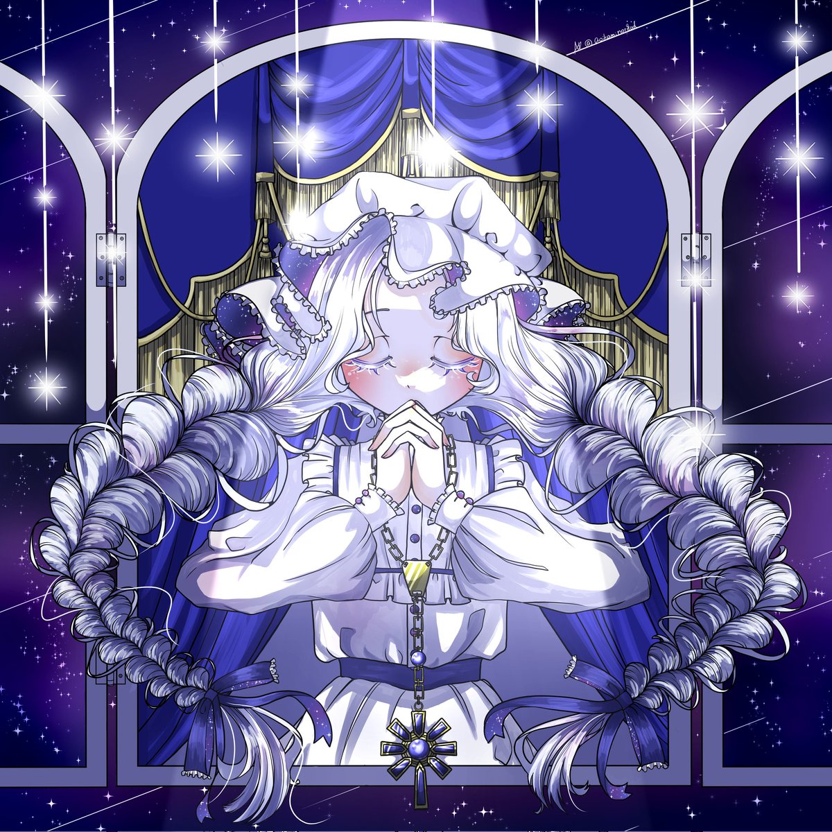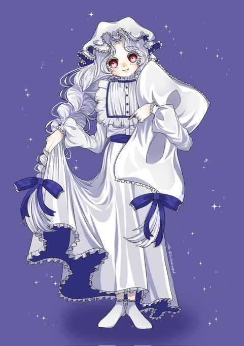 #絵描きさんがイチオシの創作っ子を貼ってくれる ルディー 私の創作の女帝(幼女)です😁😁 フワフワな白髪と、赤い目が特徴の、わがままプリンセスです😁