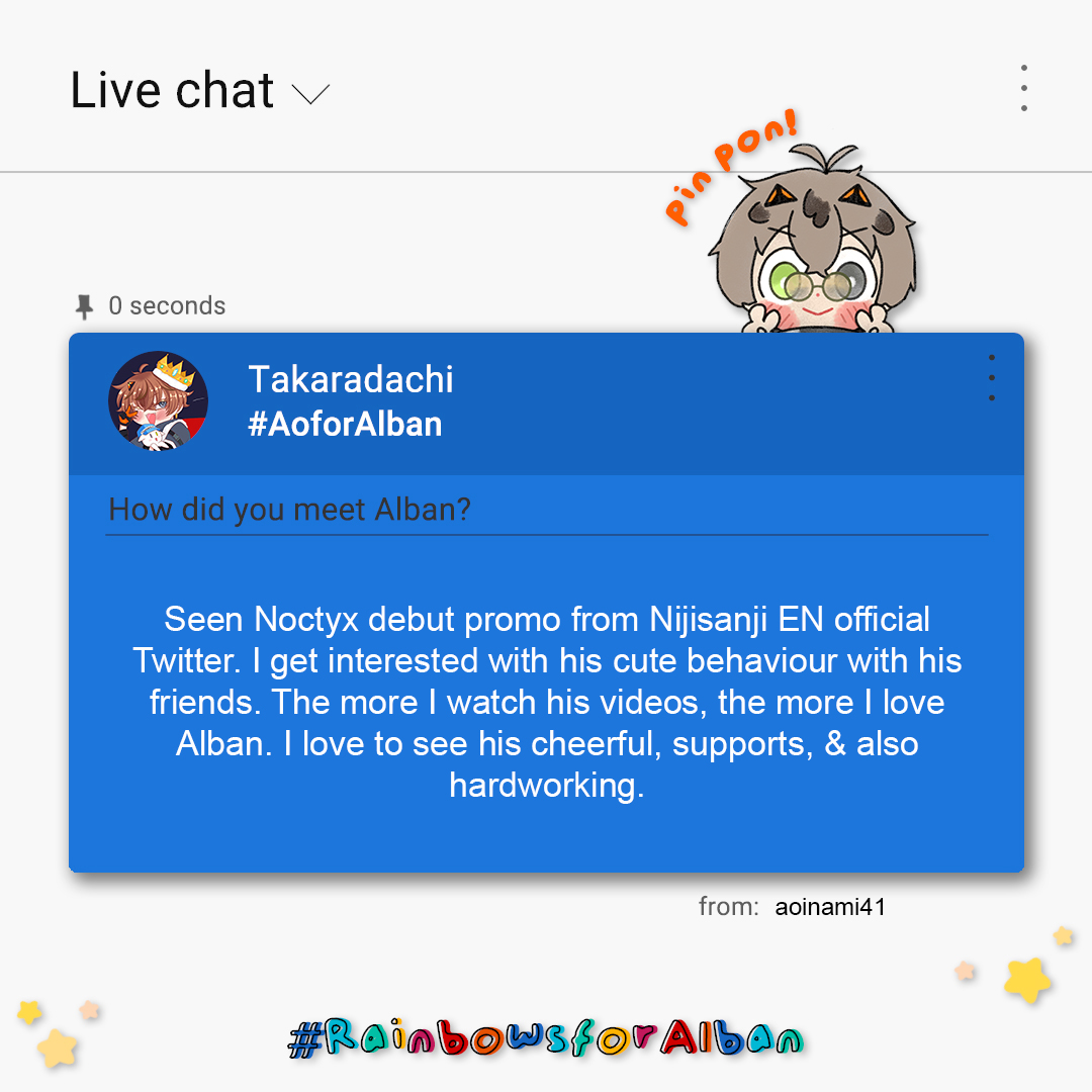 "Take care of it, & take care of yourself, my dearest treasure." Thank you for your streams, tenchou. Now have a good rest. We will wait for you to come back ╰(*´︶`*)╯ #MataneAlban #またねAlban #AlbanKnoxArt #takaradachi #AStudyInBoredom