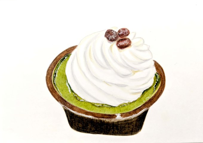 0 6 「クリームほおばる宇治抹茶ケーキ」 販売:ファミリーマート 発売日:2021年5月18日 値段:278円(税込み) #イラスト #色鉛筆画 #コンビニスイーツ #ファミリーマート 21/06/06 17:06