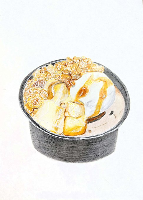 0 10 「北海道産小豆のつぶあん使用 白玉とわらび餅のクリームぜんざい」 販売:ファミリーマート 発売日:2021年6月1日 値段:298円(税込) #イラスト #色鉛筆 #コンビニスイーツ #ファミリーマート 21/06/28 14:48