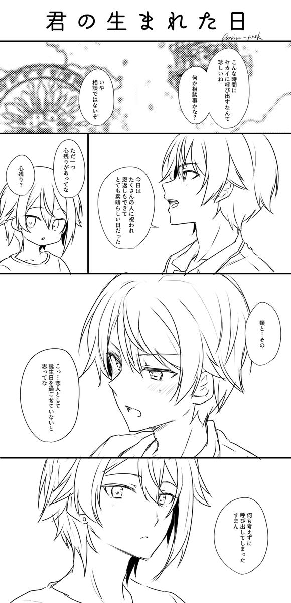 プロ🎵ェクトセ🌏イカ🌈フルス🎶ージ 8月プチ開催ありがとうございます!天🎠司×神🏰類のつかるいオンリーをぜひお願いいたします‼️‼️‼️‼️‼️‼️‼️‼️‼️‼️‼️‼️‼️‼️‼️(過去絵) #ひらいて赤ブー