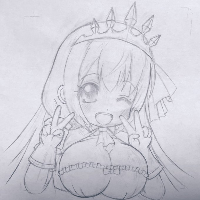 ミニ色紙に #モノクロ画 & #アナログ画 で描こうと思ったので別紙に #下描き。 とりあえずペコちゃん完成です。 下描きなので気にしなかったけど 折れてた紙なので傷が気になるなー^^; #プリンセスコネクトReDive #プリコネR #ペコリーヌ #お絵描き好きさんと繋がりたい #イラスト