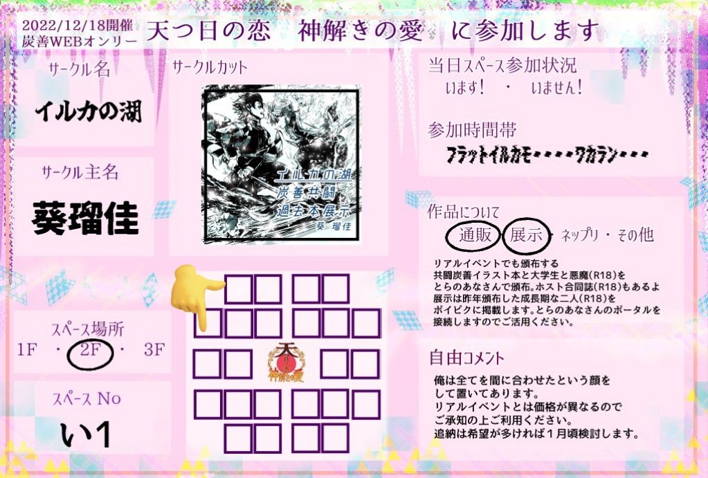 快く買い子のご協力をいただけるとのことで、6月お店のほうで出ます!!新刊は先日話していた愛しているっていうゲームをする大正軸炭善ちゃんを予定 【サークル参加します!!】06月25日(東京)JUNE BRIDE FES 2023内 たんと笑って全部愛して JB2023| #イベントGO_赤ブー akaboo.jp/event/item/201…