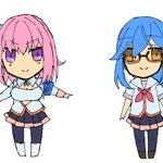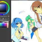 水着奈々瀬&水着水引ちゃん! 水引ちゃんは淳之介とシューベルトの3人でやんややんやしているのも好きなんだけど、あの二人以外のメンツとも仲良くしていたら私が嬉しいな〜って思ってコピックでゴリゴリ塗ったし!難しい! #かきたし