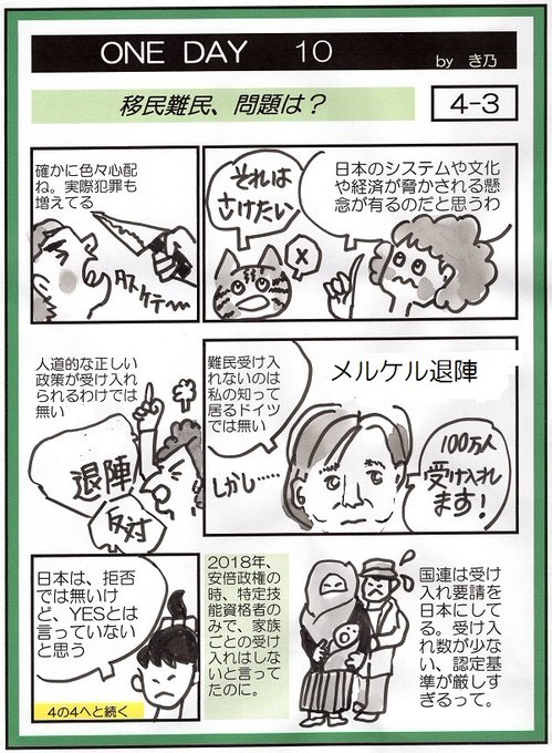 【ワンディ10】 ■移民難民 問題は? (3枚目の文字ミス修正しました) #アトリエの系譜 #イラスト #ミニコミック #移民政策 #ワンディ