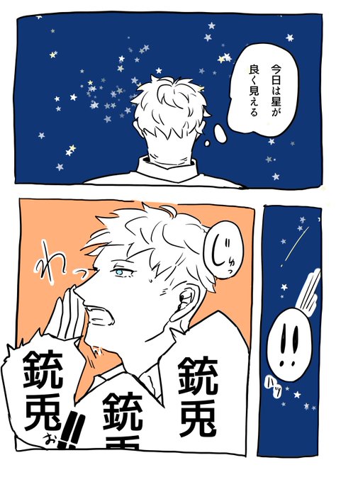 #銃理版ワンドロワンライ お題:【星空】【叫ぶ】お借りしました〜 流れ星に対して咄嗟に声を上げた🐦さん(🐰さん不在)