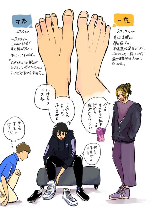 218 2396 とらふゆとら 身長差あるのに足のサイズ一緒だったらめちゃくちゃ可愛いな〜の落書き 21/10/30 13:54
