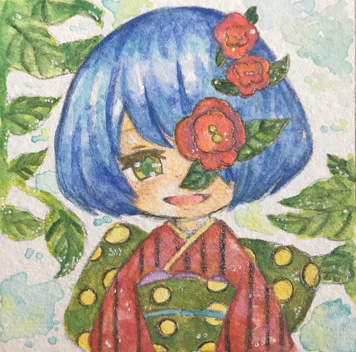 2 11 ツバキちゃん #絵描きさんと繋がりたい #創作クラスタさんと繋がりたい #私の絵柄が性癖に刺さる人に届いてほしい #水彩色鉛筆 #水彩 20/05/09 13:58