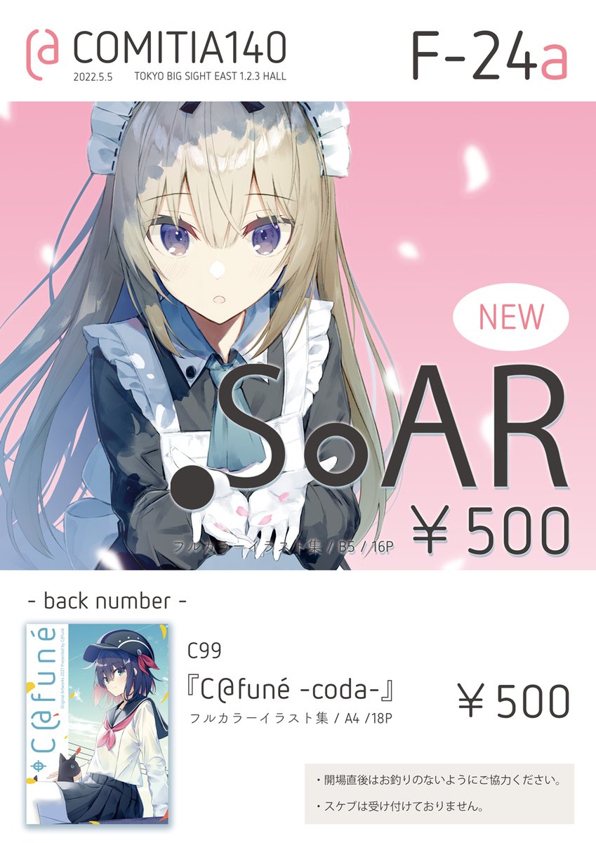 【コミティア140新刊】 新刊『.SOAR』の事前予約がメロンブックス様より始まってます! 16Pフルカラーの金髪メイド本です。 よろしくお願いします~!🌸🌸🌸 ◆通販ページ melonbooks.co.jp/detail/detail.…