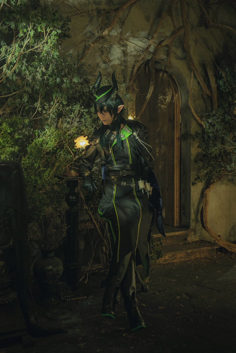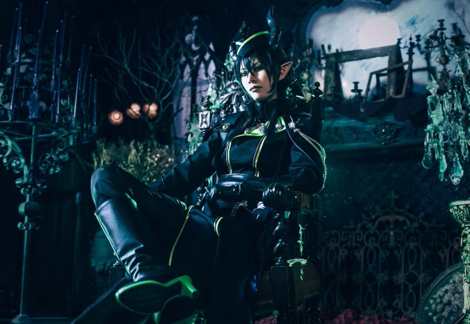 できたー🙌🏻結局手描き セタカラーにボンド混ぜて粘度上げたけど正解だったのか…🤔一回しか使わないから劣化とか考えないことにしたw あと初めて『三ツ巻き抑え』使って縫ったけど、便利すぎて今までなんだったのかとー‼️😳 twitter.com/aokage_cos/sta…