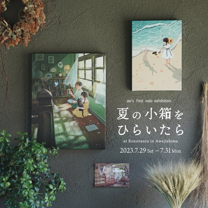 初めての個展が29日(土)から始まります。 季節の中で1番好きな夏の絵を中心に、 20点ほどの作品を新旧揃えました。 とある夏の記憶の鍵を、一つずつ開けるような気持ちでお楽しみいただけたら幸いです。 twitter.com/aokarimero/sta…