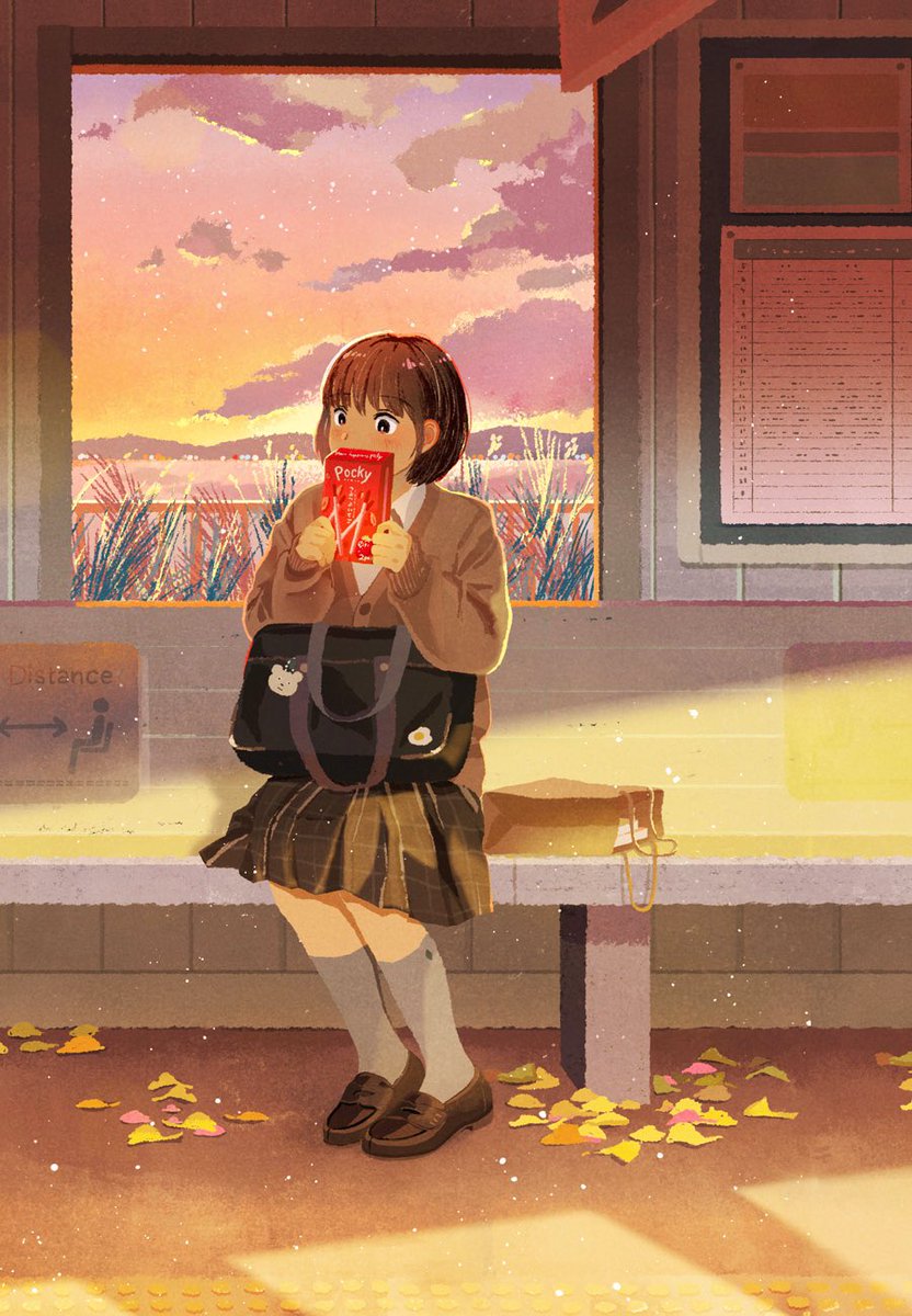 「先輩、一緒に食べませんか…?」 ---- 11/11は #ポッキープリッツの日! 秋の夕暮れ、どこかで誰かがこんな青春してたらいいなと思いながら制作しました。全体は公式さんでぜひ☺️シェアハピです⸝⋆ #ポッキーの日 #ポッキー twitter.com/pockyjpn/statu…