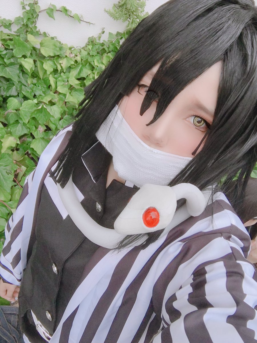刈谷アニコレお疲れ様です! 鬼滅の刃/伊黒小芭内してました🐍 今気づいたSnowで撮ったのだけどこれ遊びでメイクで弄ったままだ……盛れたぜ← 口元の包帯を直そう……うん 次回はホココスに参加します❗️ #刈谷アニコレ2019