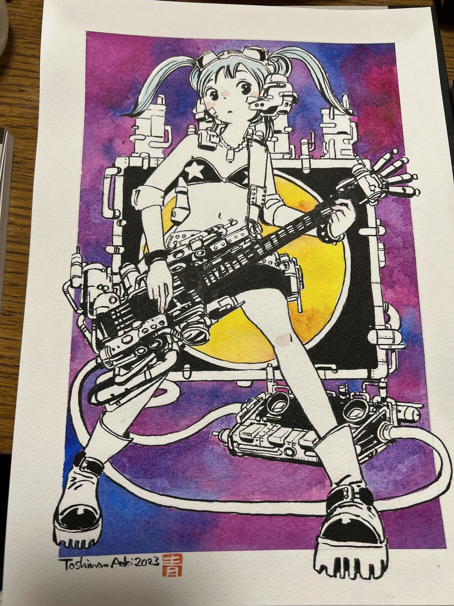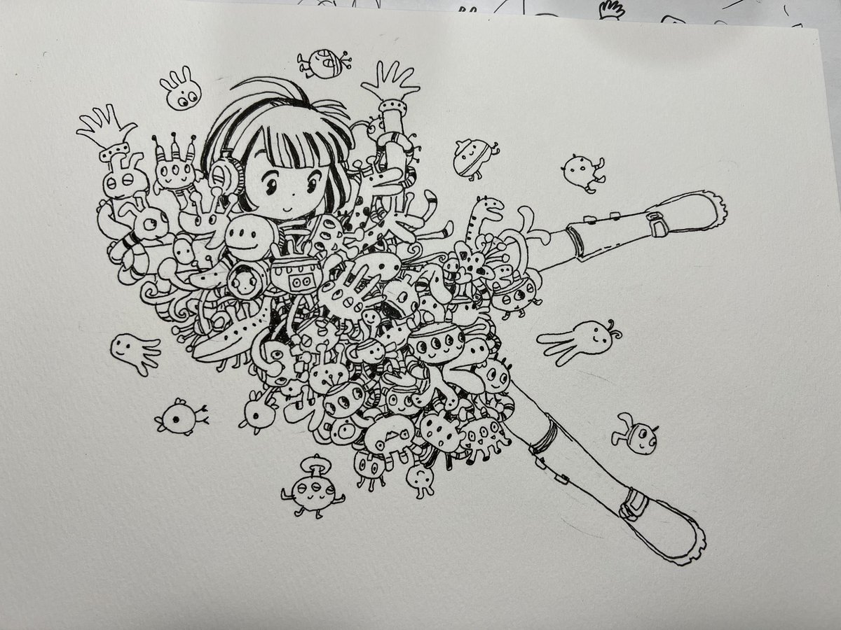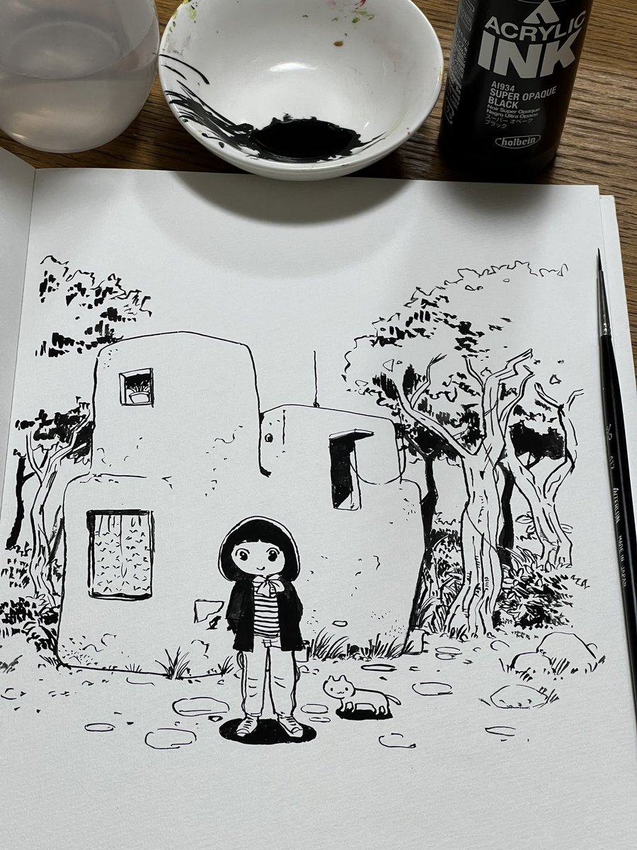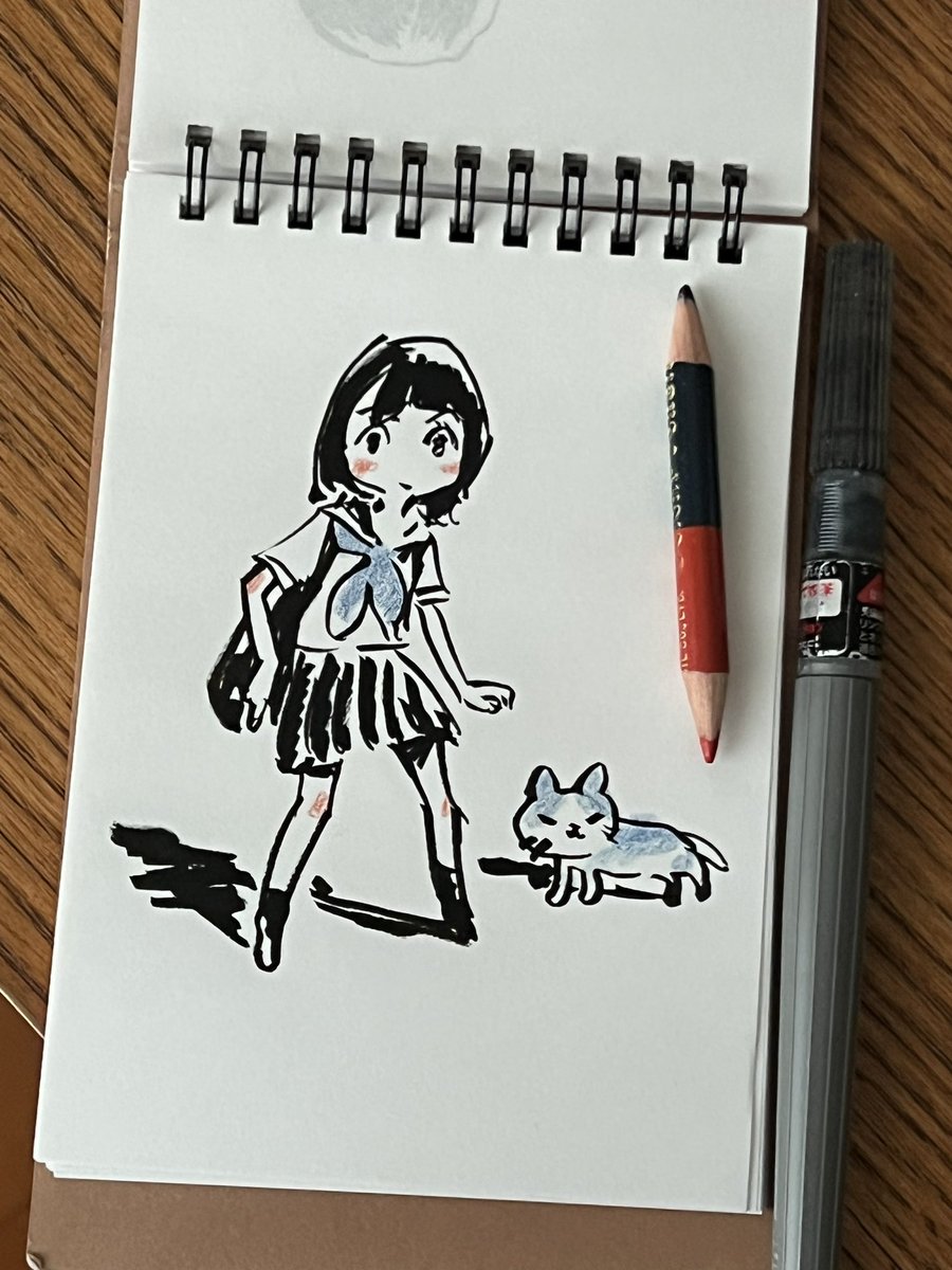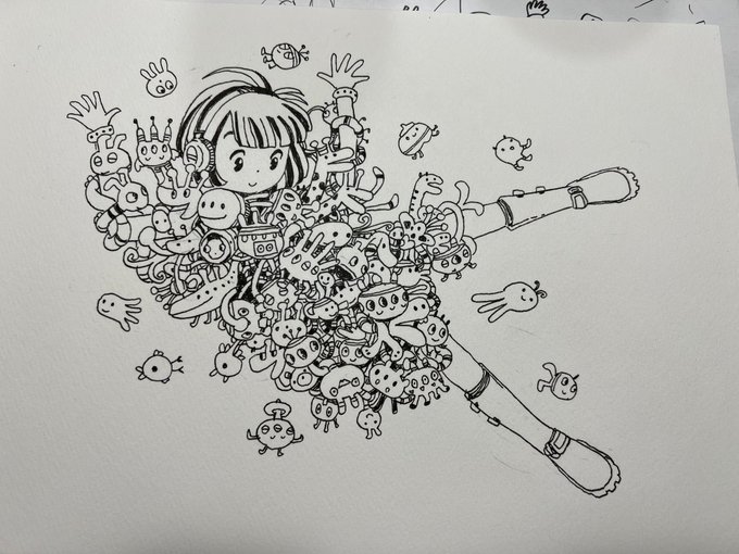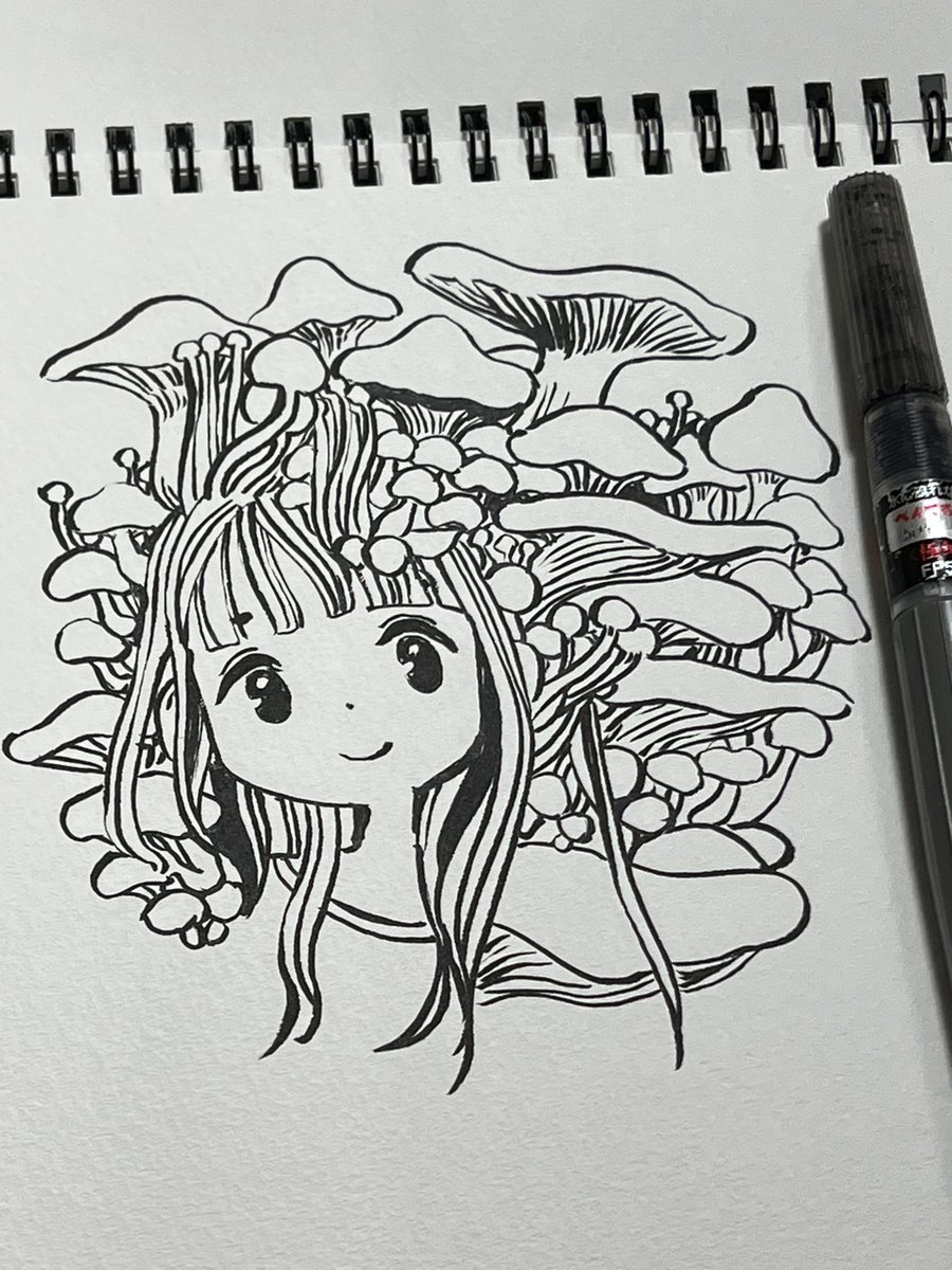 20 171 アクリルインク+細筆で描いてみる。これいいかも。慣れてくるともうちょっと自由に描けそう。 23/07/18 23:42