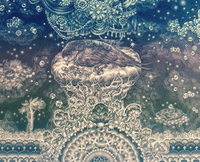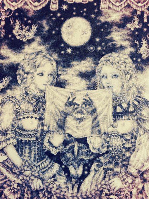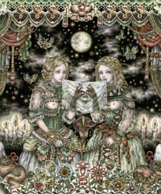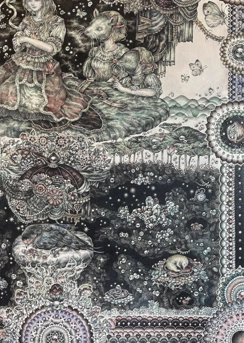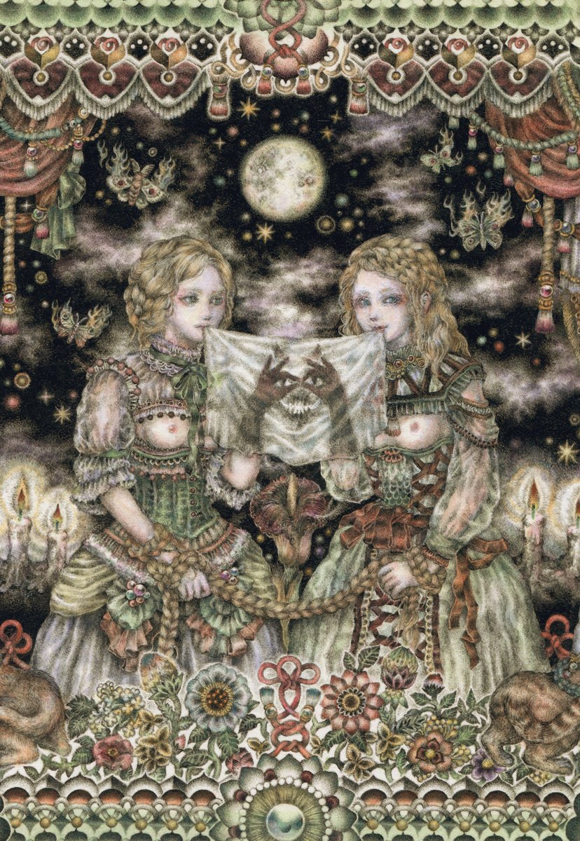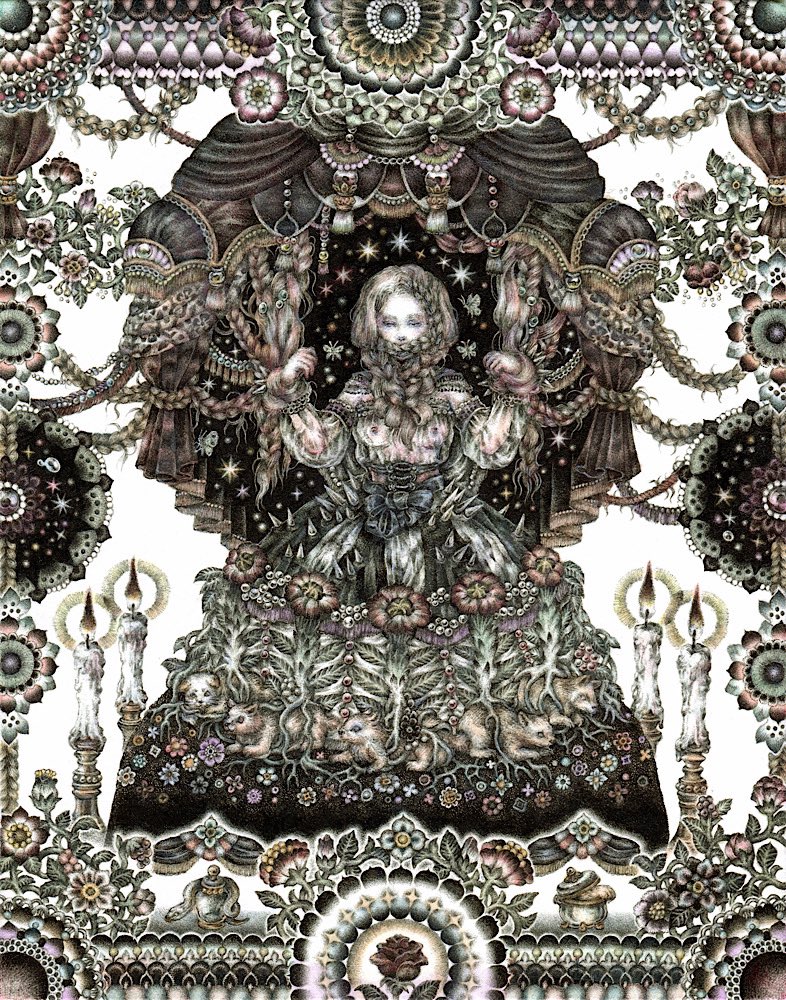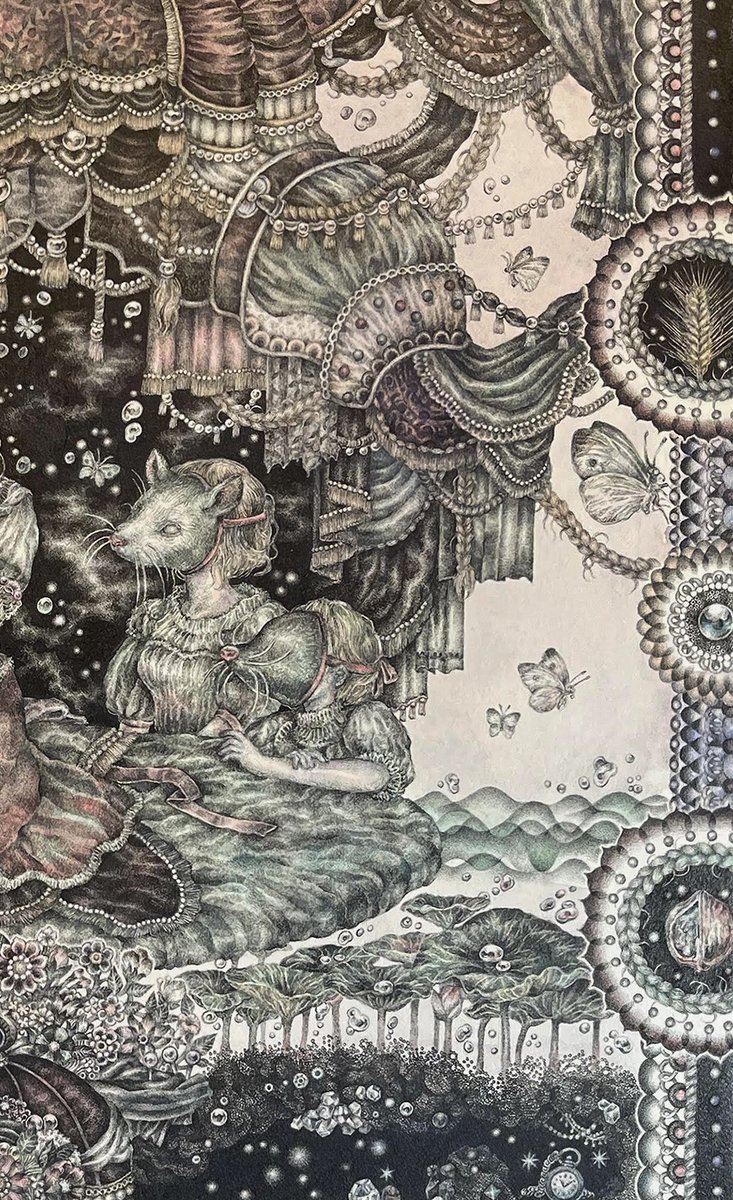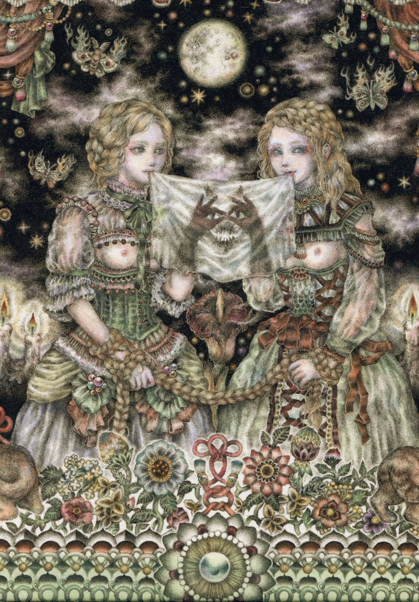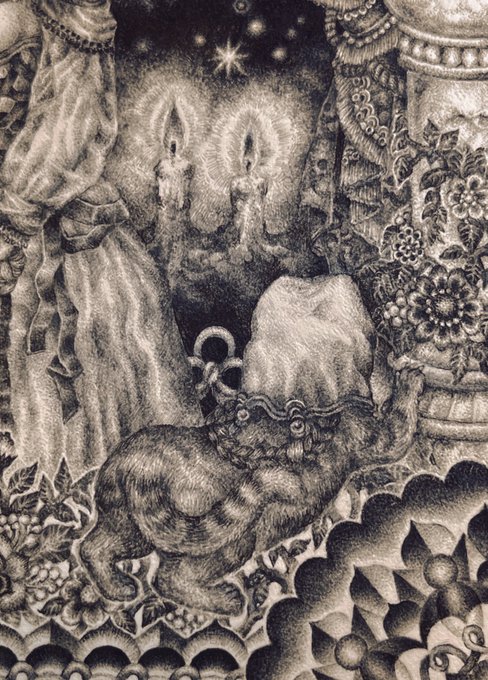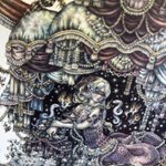 #pendrawing #inkdrawing #drawing #watercolor #art #ペン画 #細密画 #オンライン展覧会 .............. DAY 1 で素敵なエッセイとともにご紹介いただいております。 #少女の聖域_魔法大全 出品作3点のうち【ゆりかご鬼】の絵の部分。全体や細部はRT先にてご覧いただけます。 twitter.com/KIRI_to_RIBB…
