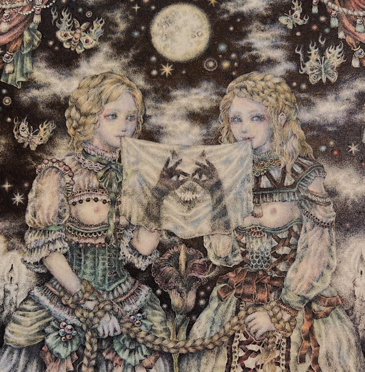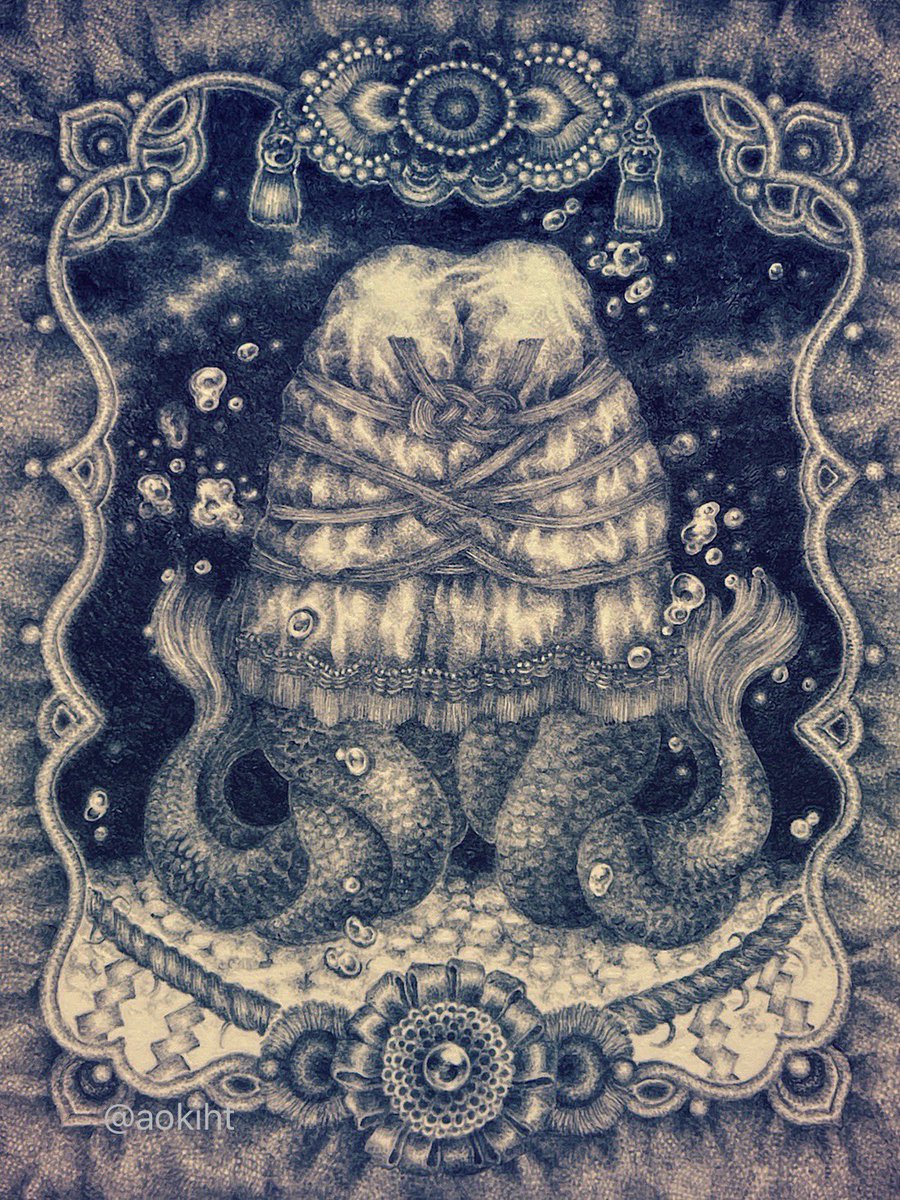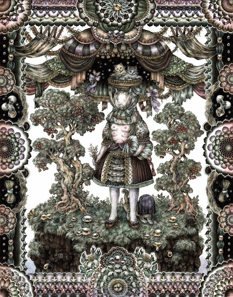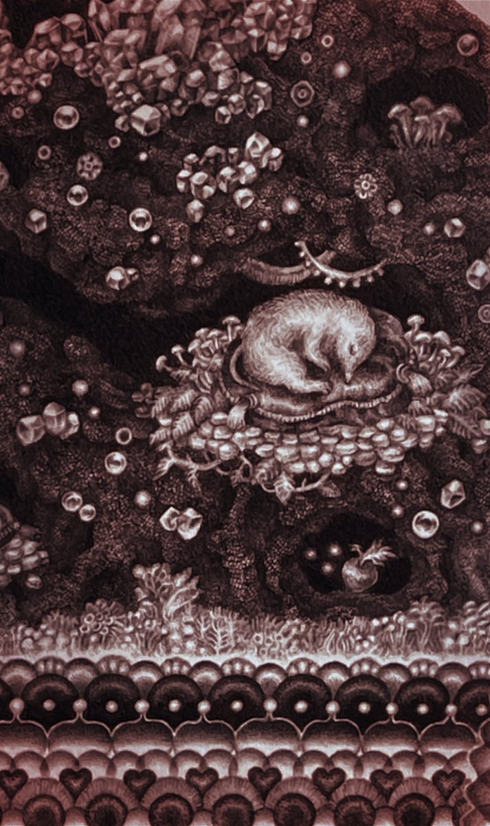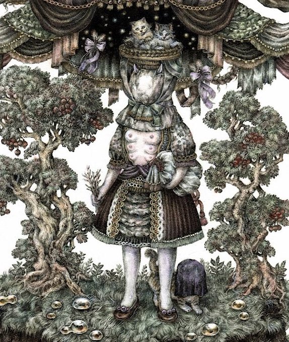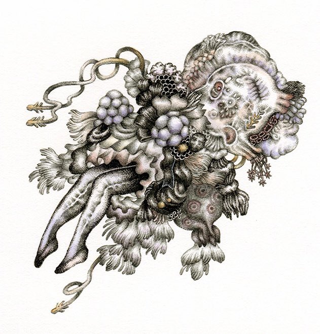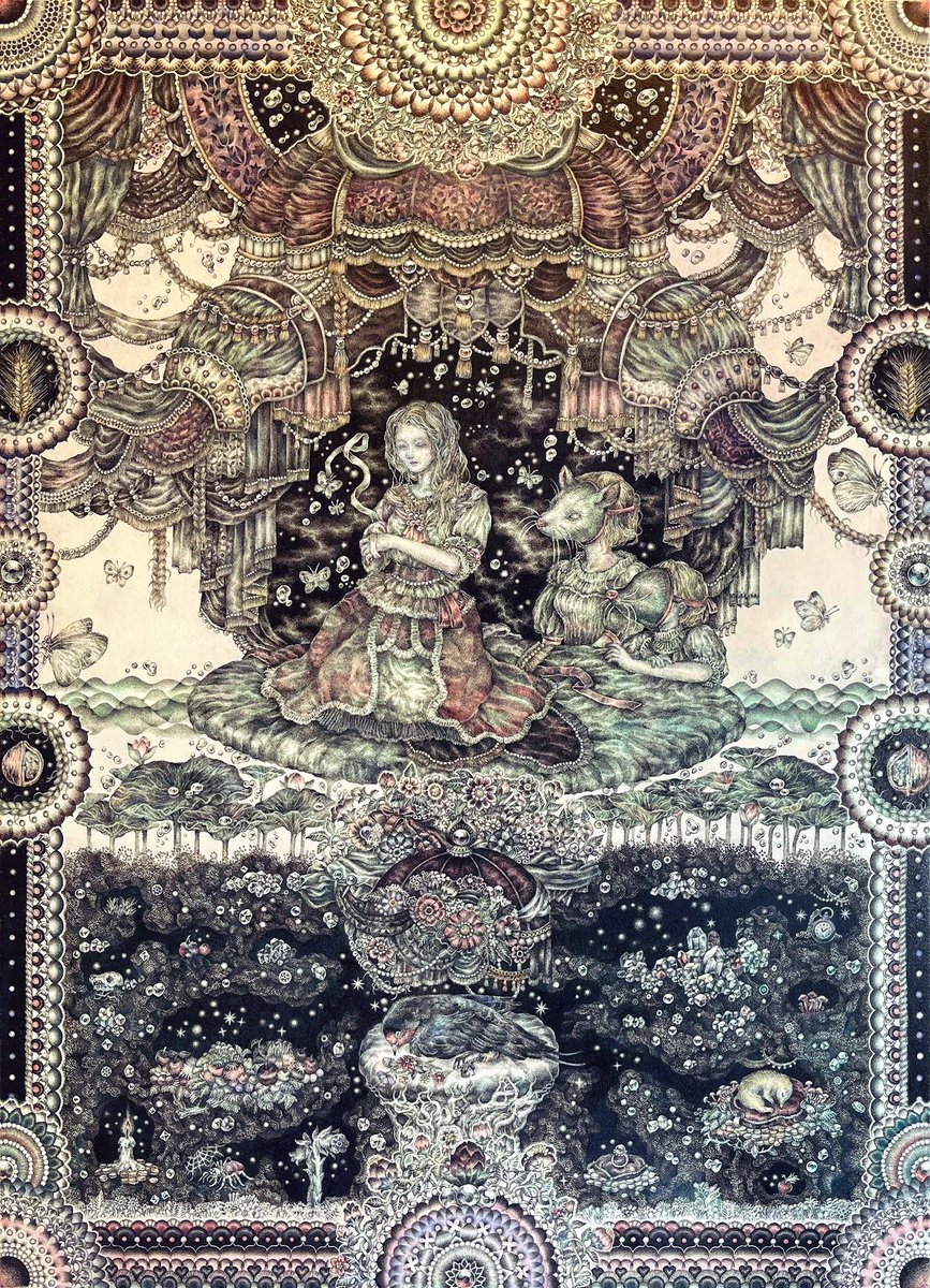 #pendrawing #inkdrawing #drawing #watercolor #art #ペン画 #細密画 #オンライン展覧会 .............. DAY 1 で素敵なエッセイとともにご紹介いただいております。 #少女の聖域_魔法大全 出品作3点のうち【ゆりかご鬼】の絵の部分。全体や細部はRT先にてご覧いただけます。 twitter.com/KIRI_to_RIBB…
