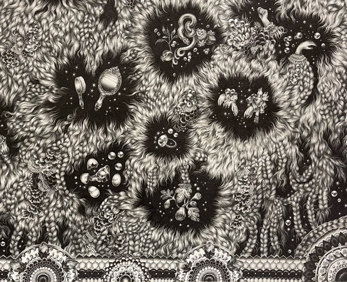 作品部分です。 H33.3 x W24.2cm なのでいつもより大きい画面🪐 #pendrawing #inkdrawing #drawing #watercolor #art #ペン画 #細密画 #細密 #アナログ