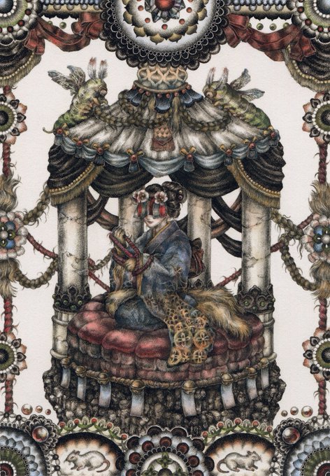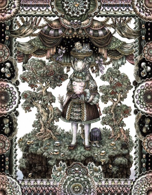 #pendrawing #inkdrawing #drawing #watercolor #art #ペン画 #細密画 #細密 #アナログ 過去作再放送📡 妖しい祭壇の乙女、帽子猫などが好きでよく登場します。額縁のような部分も全て手作業でコツコツ描いているので、微妙なゆらぎや歪さも含めて楽しんでいただけたら幸いです。