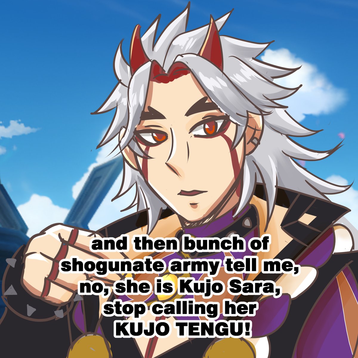 Great Tengu Debate One things that's Itto Good at ... 1/3 reff: facebook.com/nathanthecatla… #aratakiitto #KujouSara #ittosara #lumine #Paimon #GenshinImpact #FANART #genshinimpactfanart #genshinmeme