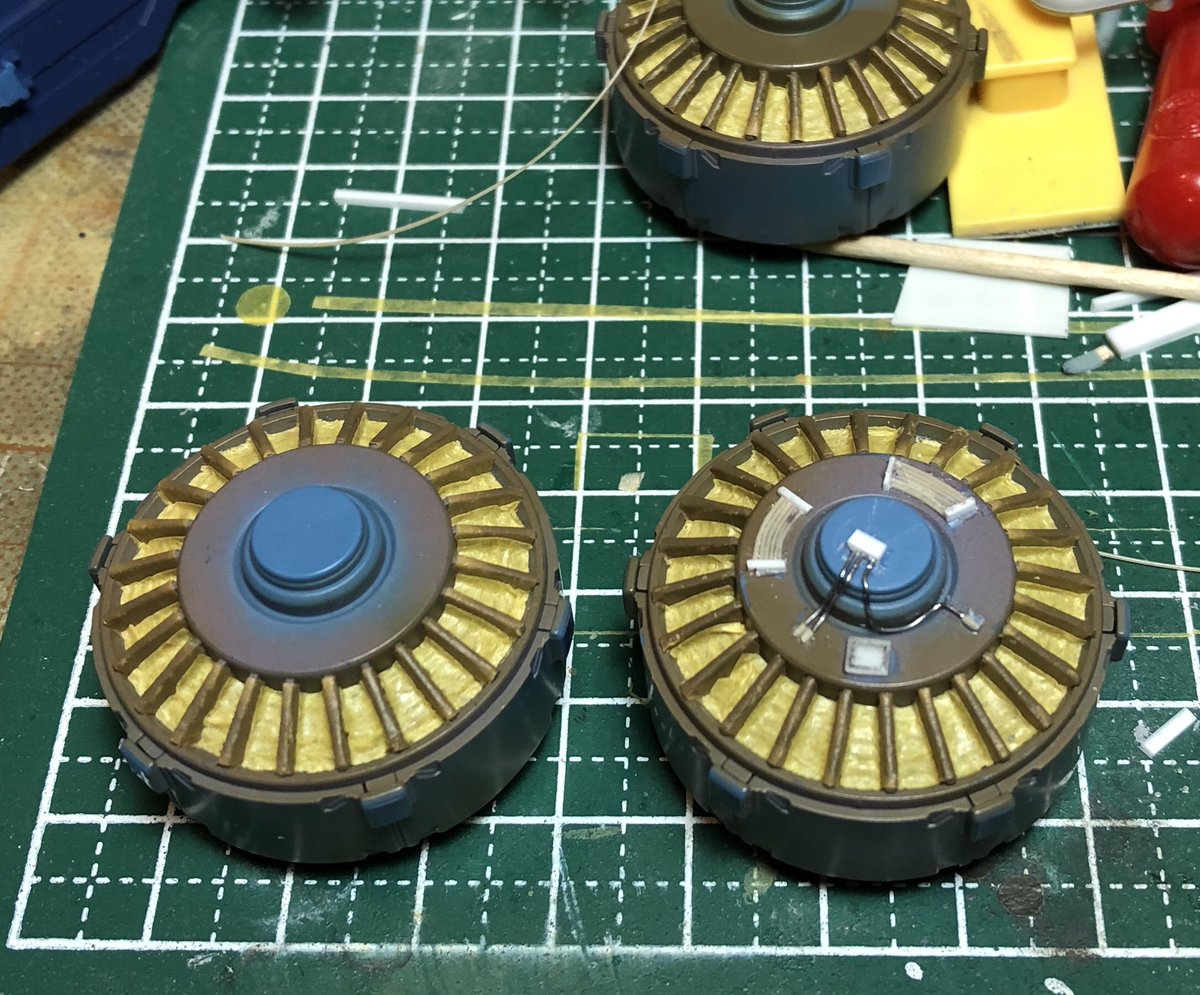 ビッグガンのジェネレーターをディティールアップ。説得力不足ですが、3個作るのでこれくらいにしましょう #ガンプラジオ