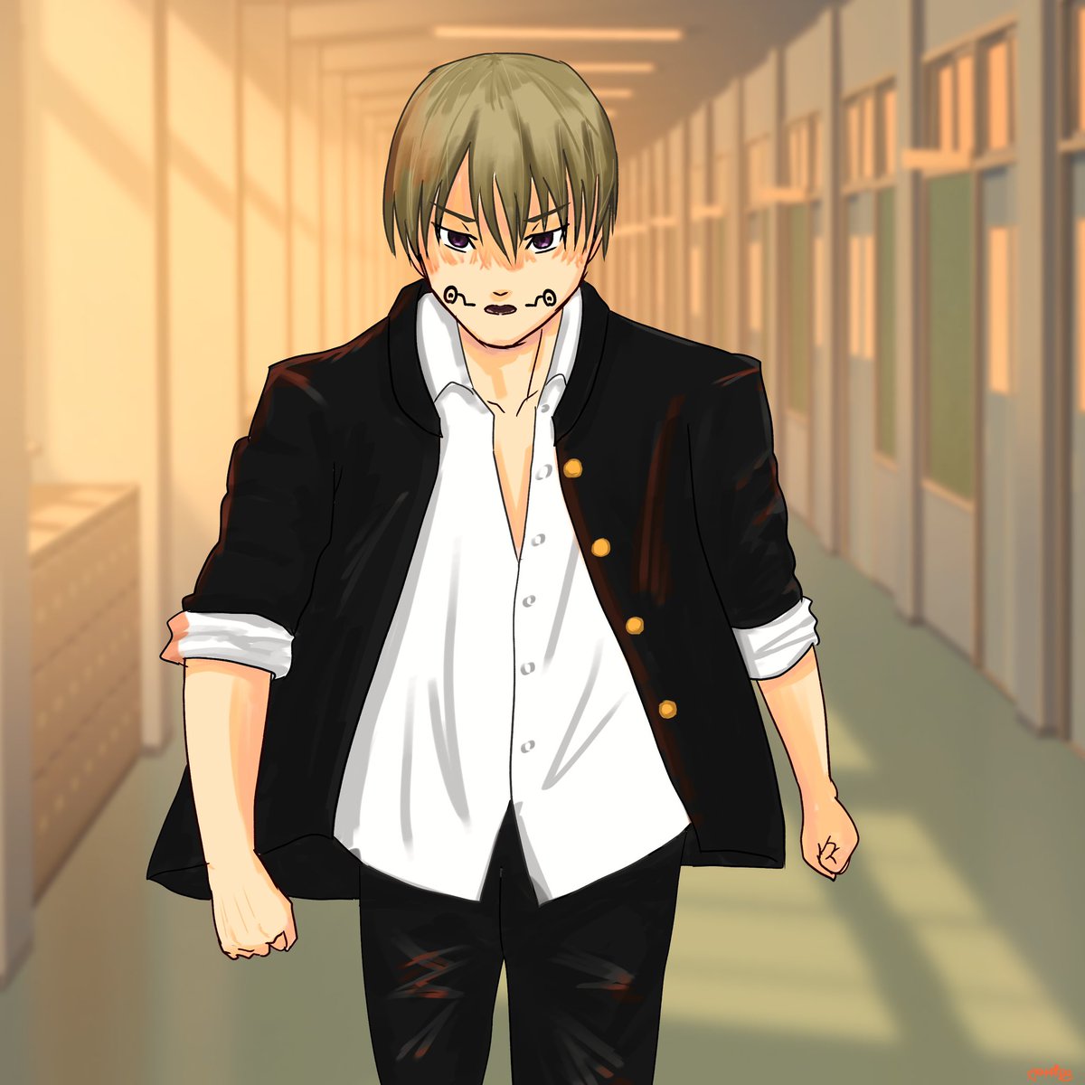 #呪術廻戦ファンアート 学ラン着てるとげぴ ガラ悪くなってまった🤣