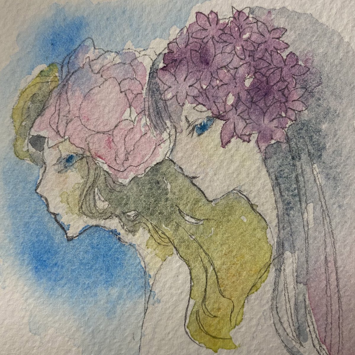 1 6 #水彩行進曲 「姉妹」 花の姉妹 23/03/23 15:44