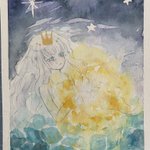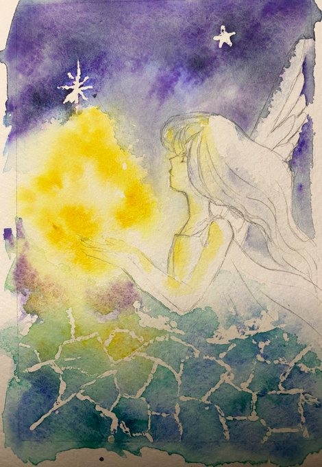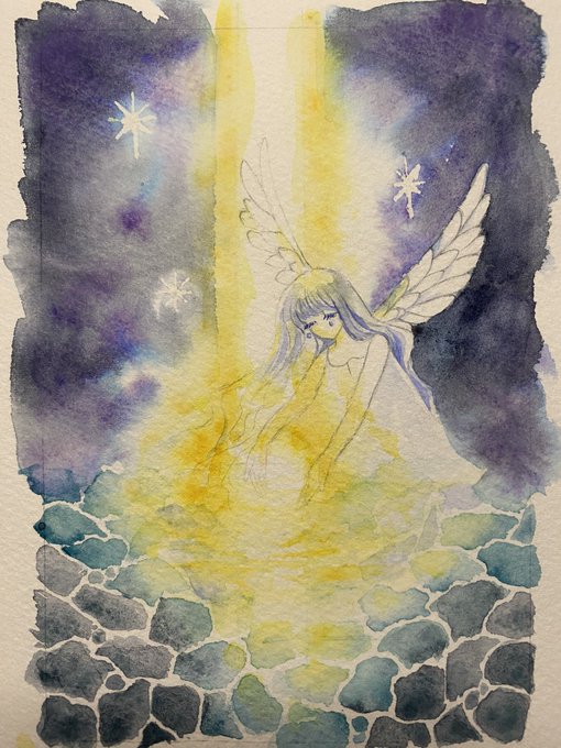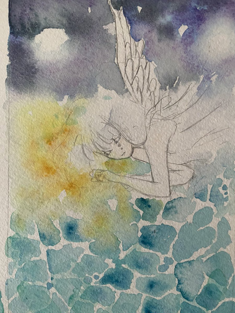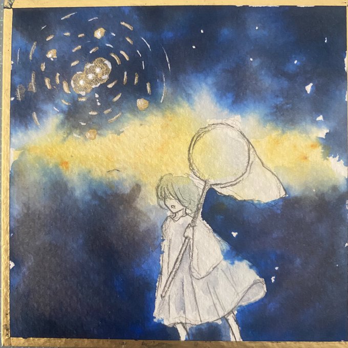 0 2 上げ直し😅 制作途中。ゴスロリちゃん👽 星の降る夜ダンスの練習。 #水彩画 #透明水彩 #watercolor 23/07/01 14:49