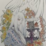 5 12 「犠牲」 モチーフ黒姫物語。容姿端麗な黒姫様に蛇だったり小姓だったり蝶だったりに化けた黒龍がストー……結婚を申し込むけど偉い人に邪魔されてめちゃ激怒で嵐を起こしたりしちゃうもんだから黒姫様が黒龍の元へ行ってなんとか宥めてそのまま山の池に2人で住むことになりました。 #ペン画 #水彩画 23/05/31 22:27