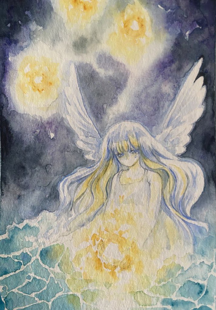 ダメな日は無理しないで寝よう。おやすみなさい。 #水彩画 #透明水彩 #アナログ絵
