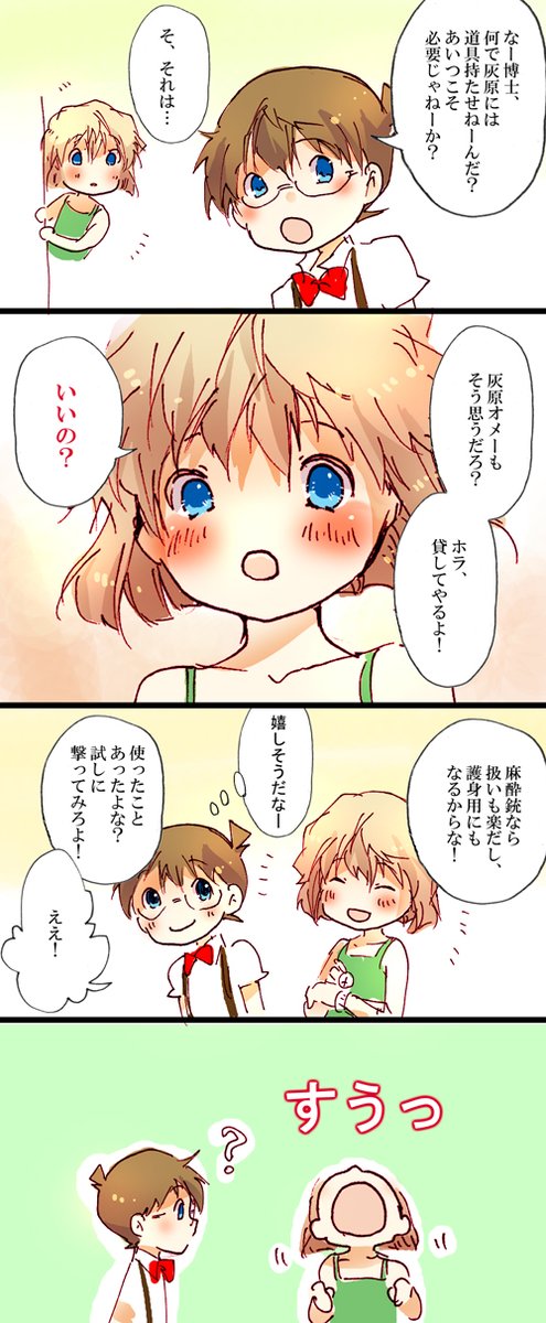 おはようございます❕ 今日は名探偵コナンの創作漫画を載せます かなり前に描いたもので、灰原哀に道具を 持たせるとどうなるかという漫画です📖 #漫画が読めるハッシュタグ #マンガが読めるハッシュタグ