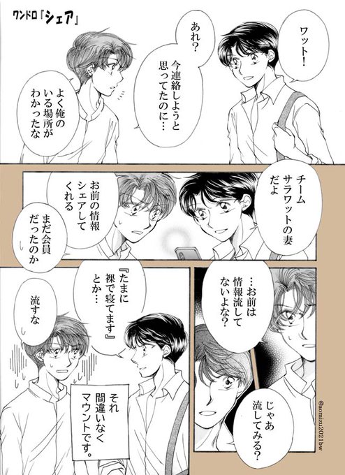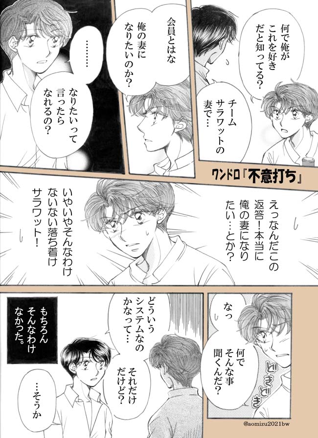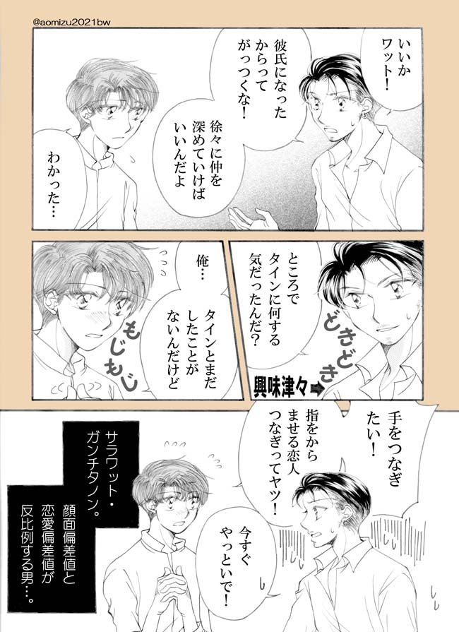次回のワンドロまでには描きたい!…と思ってましたが間に合った😅ワンドロ『指』の後日譚です。たまには幸せなワットも描かないとな‼️🤣🤣🤣 #タイ沼版ワンドロ #サラタイ創作 twitter.com/aomizu2021bw/s…