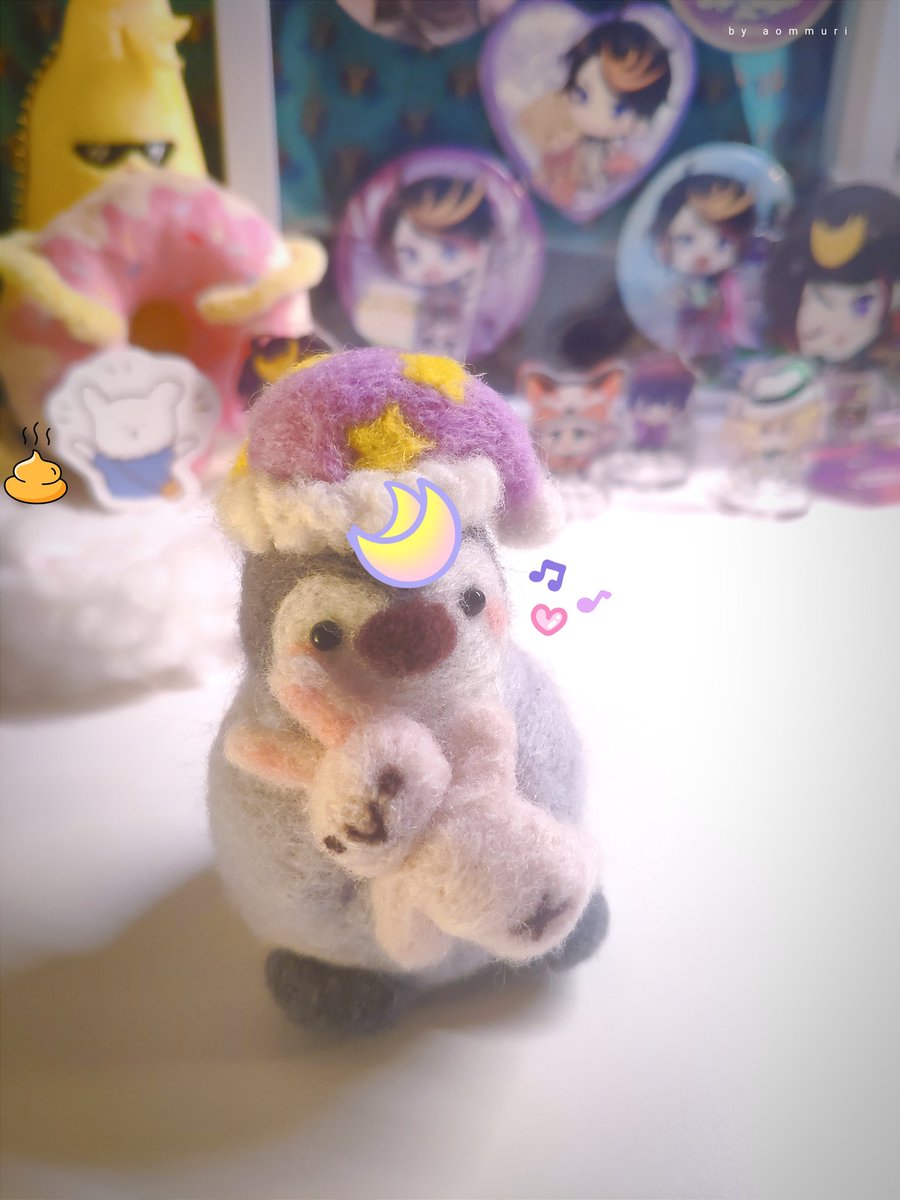 My first needle-felting attempt Shubert! ☯️👟🐧 I followed DIY's manual so it's not that hard even for beginner like me. Not brave enough to attach real wool banana on his head so I put sticker on instead 🍌 PS.That bunny quiet creepy tho 🤣 #yaminoArt