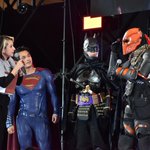 D.C.ステージでインタビューに応えるデスストロークの写真見てたらヘルメットの硬さの確認する時のなんだけど、GOWさんに怒られて頭コツンされてるみたいで可愛い😍あとバットマンめっちゃ見てくれてる🦇 #東京コミコン #東京コミコンコスプレ