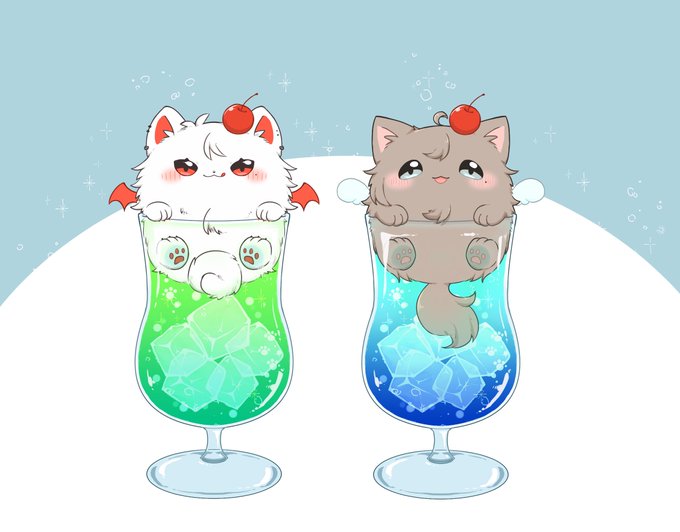 スマホに挟みたいからねりねりしてるくりーむそーだちゃん達🐶🐱 メロンソーダかいちごソーダか悩み……