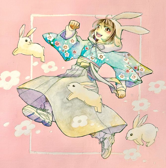 3 19 Happy new year🐰🌸⛩✨ #透明水彩 #アクリルガッシュ 23/01/06 18:26