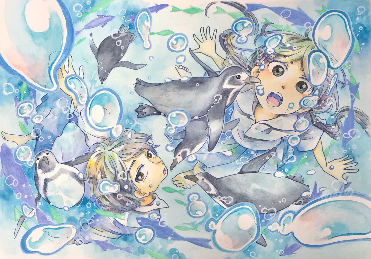 🐟🐠🐟🐠。。🐧 #さかなの日 #コピック #透明水彩