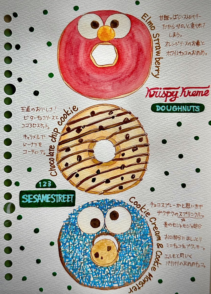 クリスピークリームドーナツの期間限定セサミコラボ🍩かわいいっ もう1回食べたかったけど近くにないんだよなー_(┐「ε:)_ #コピック #透明水彩