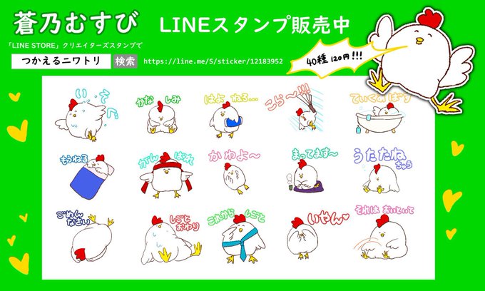【蒼乃鳥LINEスタンプ第2弾】 例のニワトリスタンプ第2弾が販売開始です😊😊😊!!! 今回も40種描きましたぞ......☺️🐣🐥🐤🐔 ぜひぜひみていってくださいね〜🙏 よければトーク画面にに連打してね......☺️ line.me/S/sticker/1846…