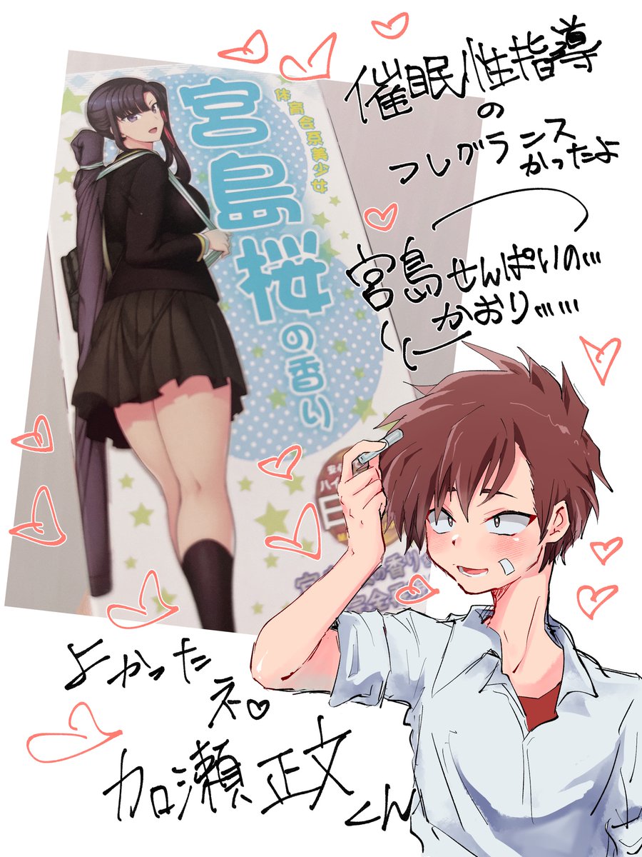 催眠性指導のフレグランス(宮島せんぱい♡)買ったよ 加瀬正文くんがかいでるやつかあ、の思いで描きました✏️ あまいにおいがする、せんぱい......♡ フレグランス↓↓↓ ec.toranoana.jp/tora_r/ec/item…