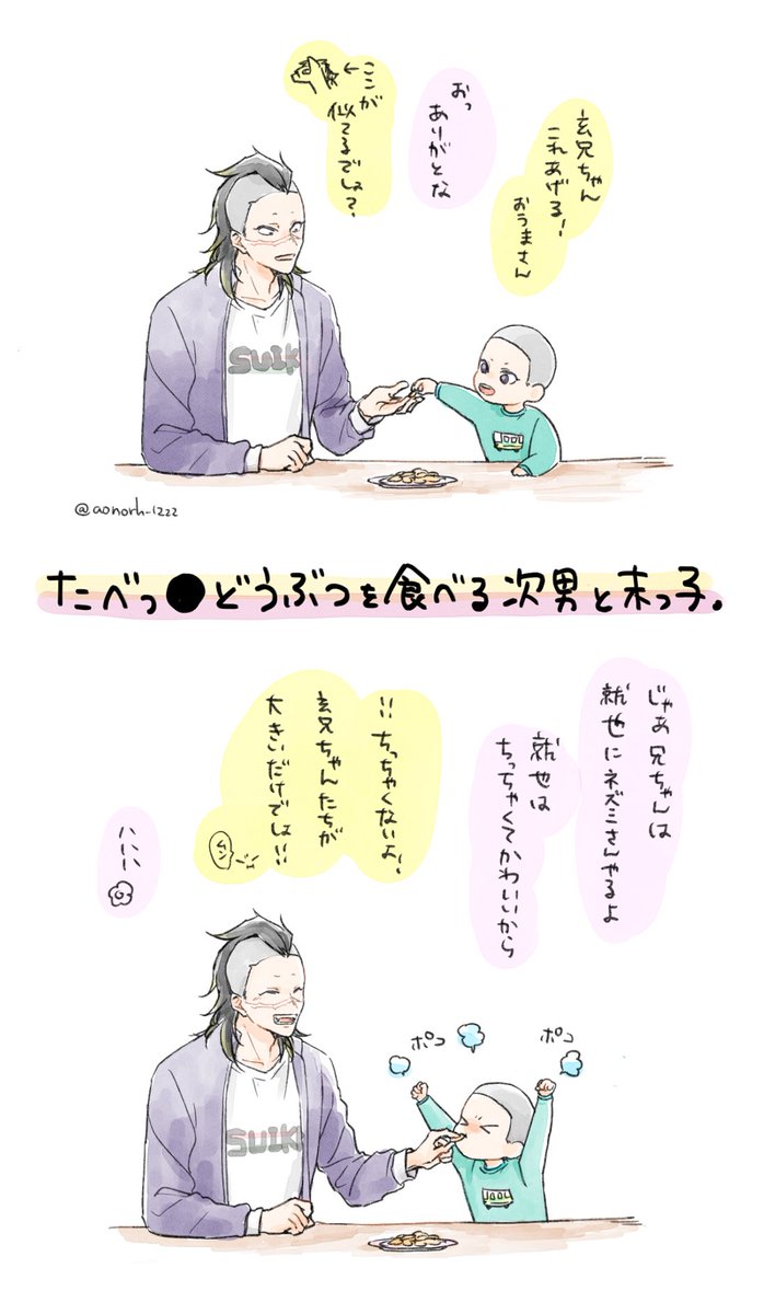 改めまして先日はイベントお疲れ様でした。本を手に取っていただき、またお声をかけていただけて大変嬉しかったです~!お手紙や差し入れもありがとうございました…!大切に大事に活力にさせていただきます🙏✨(当日みどりの日だったのでスケブに描かせていただいた兄弟🌿テイク2)