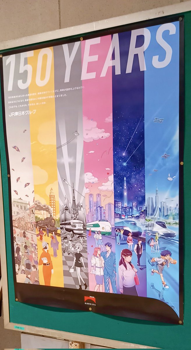 未来パートのキャラクターを描かせて頂いた鉄道開業150周年記念ビジュアルのポスター頂きました! B2サイズです。駅で見るとそんなに大きく見えないのに家に飾るとかなりの迫力があります😌 #鉄道開業150周年 #鉄道の日