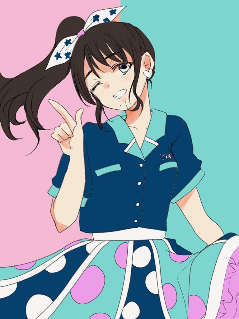 47都道府県制覇記念本に寄稿したイラストです😊 初の地元岩手公演EXPRESSの衣装と、初めて奈々ちゃん単独LIVE参戦したTHEATERのバー🍸のお衣装描かせていただきました✨