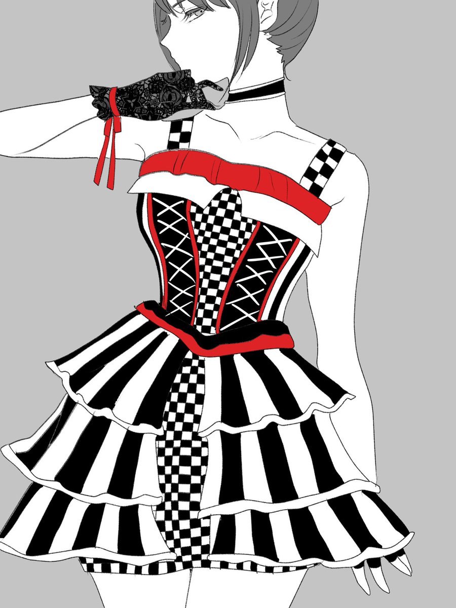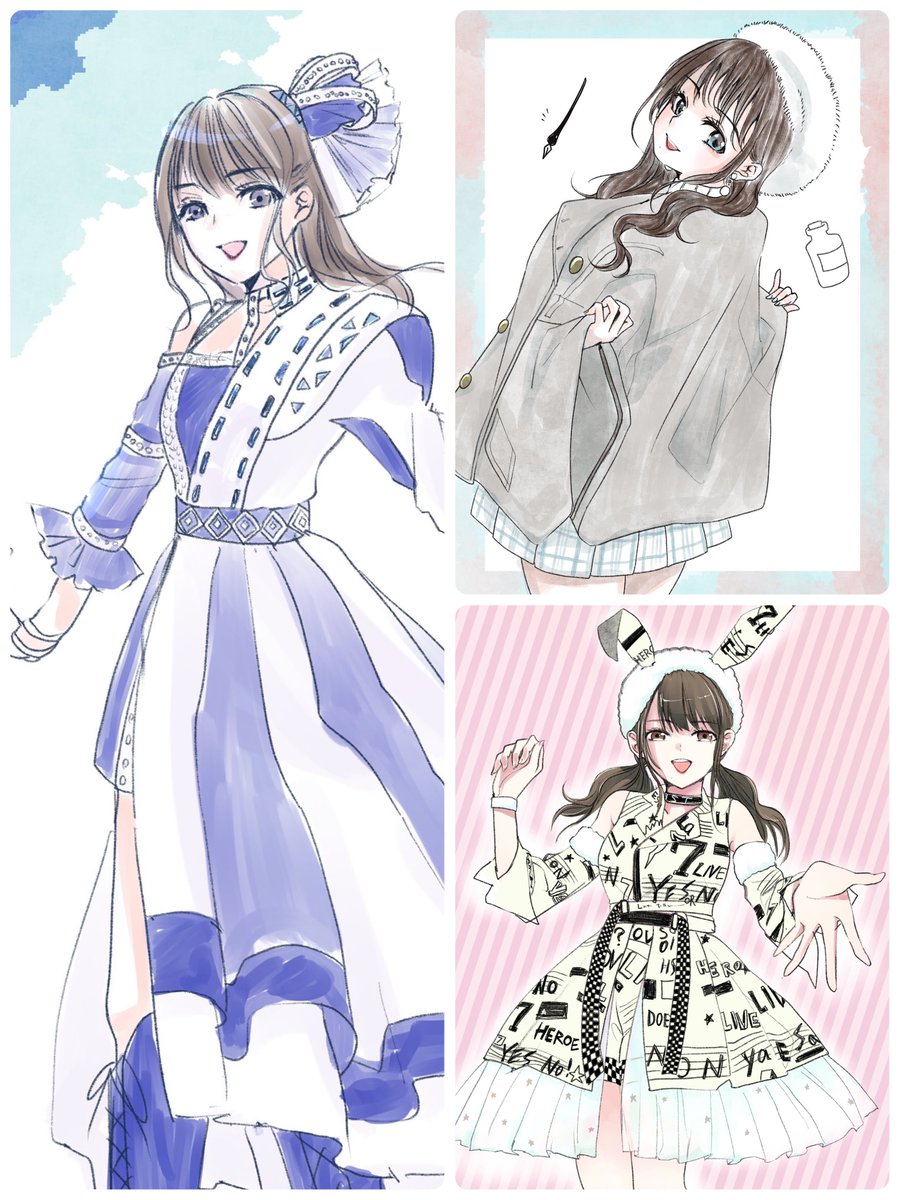26 85 47都道府県制覇記念本に寄稿したイラストです😊 初の地元岩手公演EXPRESSの衣装と、初めて奈々ちゃん単独LIVE参戦したTHEATERのバー🍸のお衣装描かせていただきました✨ 23/02/14 20:48